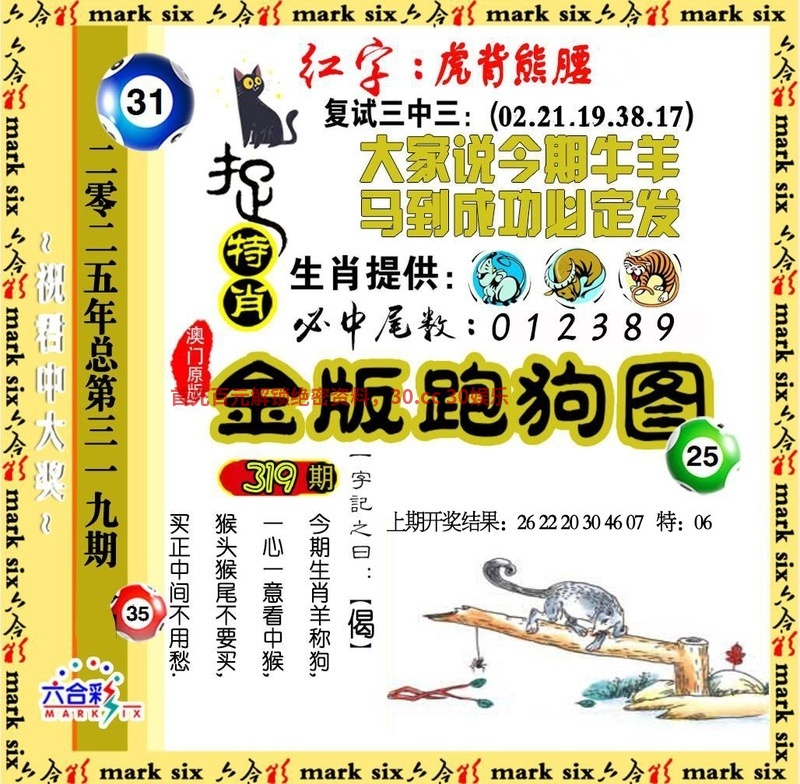 318期:七肖【虎狗羊鼠猴兔鸡】开:鼠06准